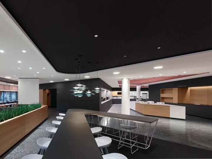 設(shè)計(jì)以開放的格局營造寬敞的空間體量,清新靚麗的色彩和豐富的材質(zhì)肌理令整個空間有著大學(xué)校園般的青春氛圍。可調(diào)節(jié)高度的升降桌、充滿活力的綠植墻、提供健康飲食和零食的自助餐吧,深圳裝修公司設(shè)計(jì)體現(xiàn)以人為本的設(shè)計(jì)哲學(xué)。