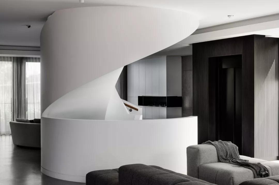 深圳裝修公司設計事務所,利用形式、紋理和對比來創造一個優雅豪華的家庭住宅,直條的力量與弧線的柔和,混凝土的剛強與原木的溫柔,一場力與柔的較量上演。。。。
