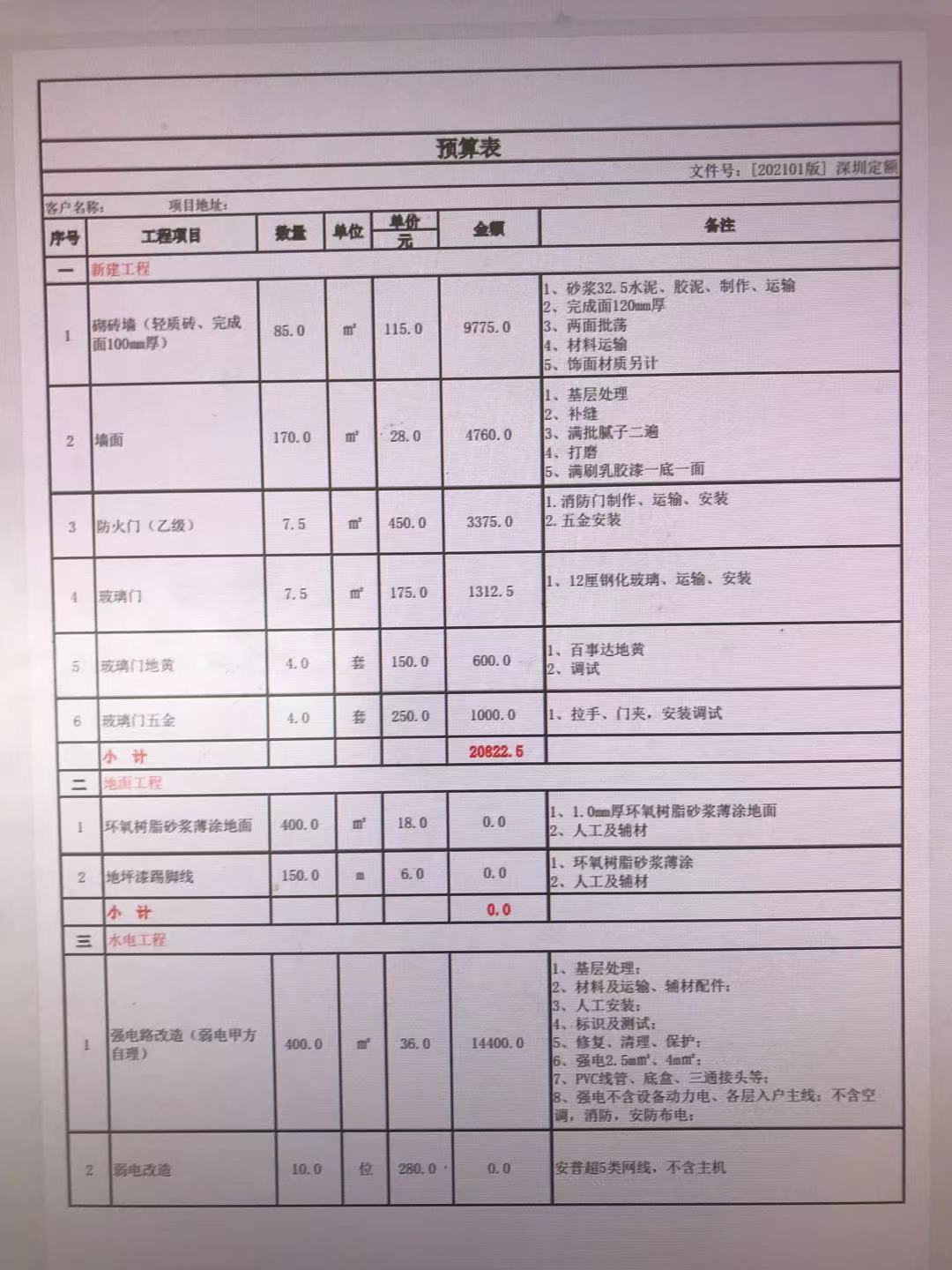 深圳裝修報價單明細表